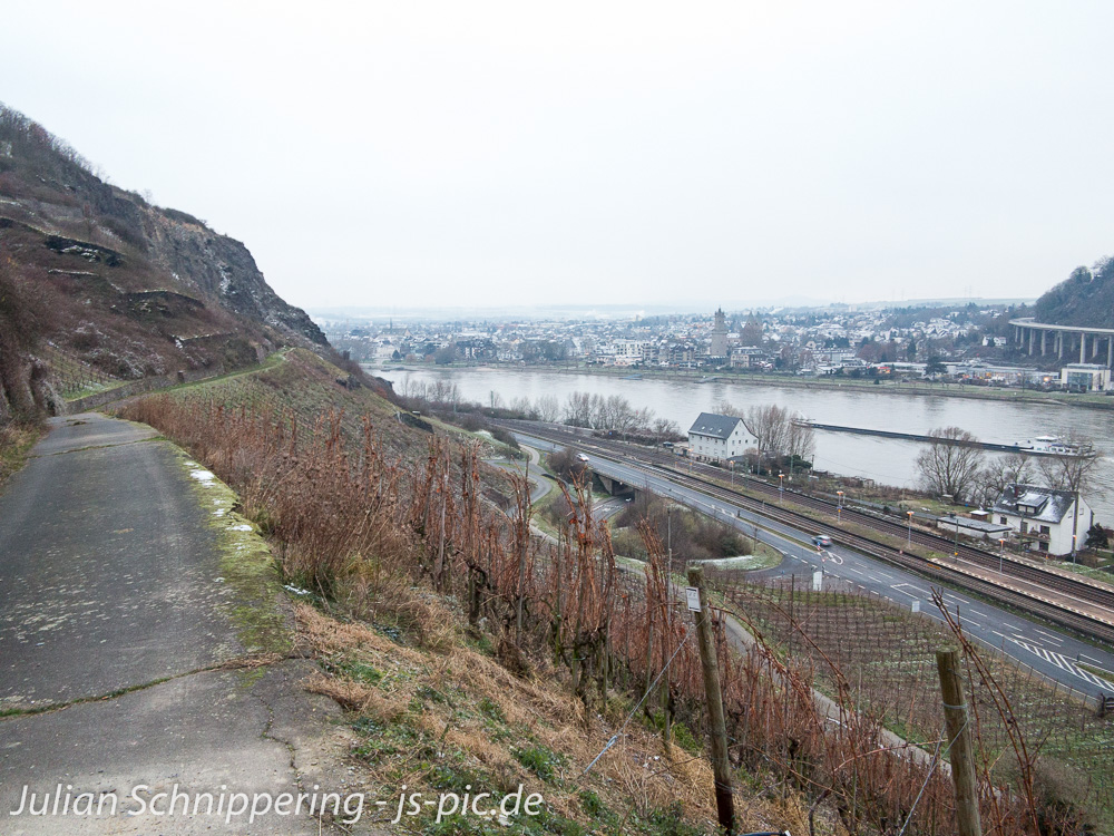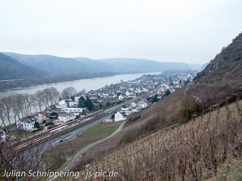 Vom Bahnhof aus ging es über den Rheinsteig zuweg direkt hinauf in die Weinberge. Von hier aus hat man eine grandiose Übersicht auf Leutesdorf und den Rhein. Anstrengend ist es natürlich auch, aber es war ja erst der Anfang der Tour.